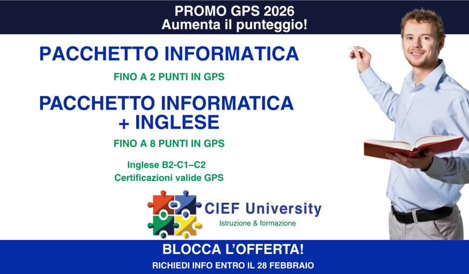 In vista del prossimo aggiornamento delle Graduatorie Provinciali per le Supplenze (GPS) 2026, CIEF University lancia una promozione dedicata ai docenti che vogliono incrementare il .